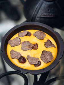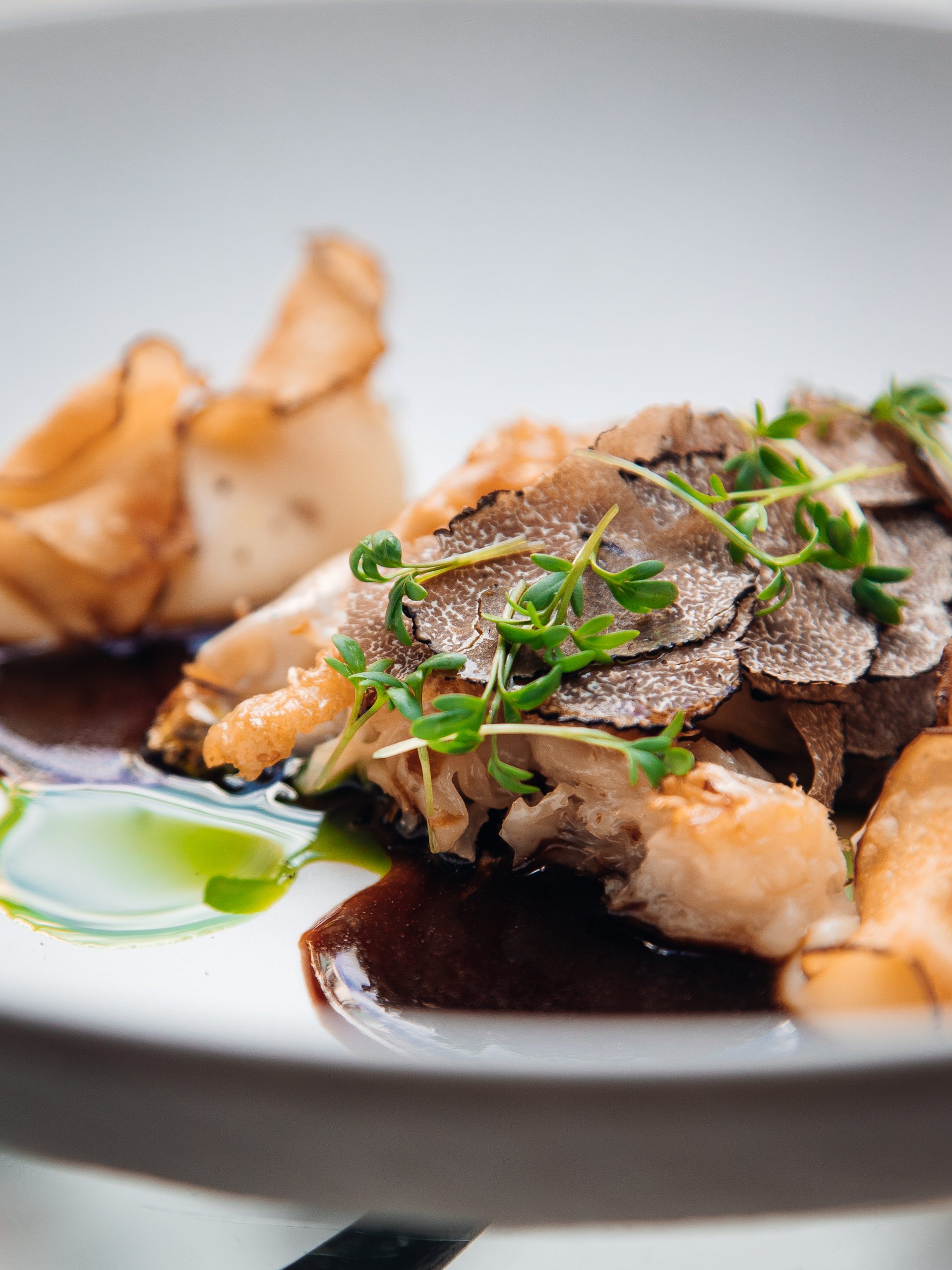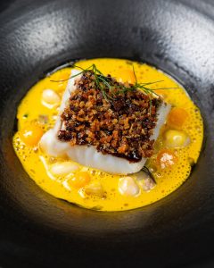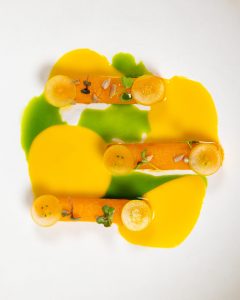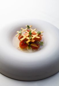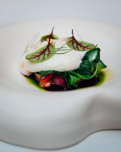 Με αυτά τα «υλικά», δημιουργεί πιάτα με βαθιά νοστιμιά που δομούν τη Νέα Ελληνική Κουζίνα, ιντριγκάροντας τη σκέψη και τον ουρανίσκο.